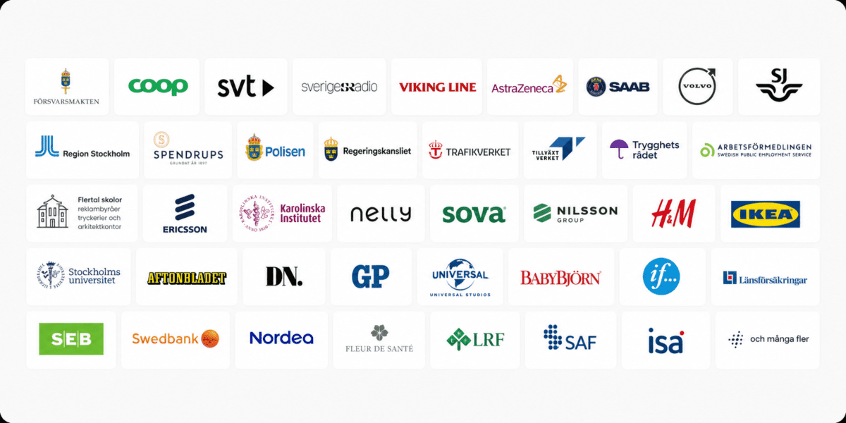 - Retail & Bank: H&M, IKEA, Coop, SEB, Swedbank.